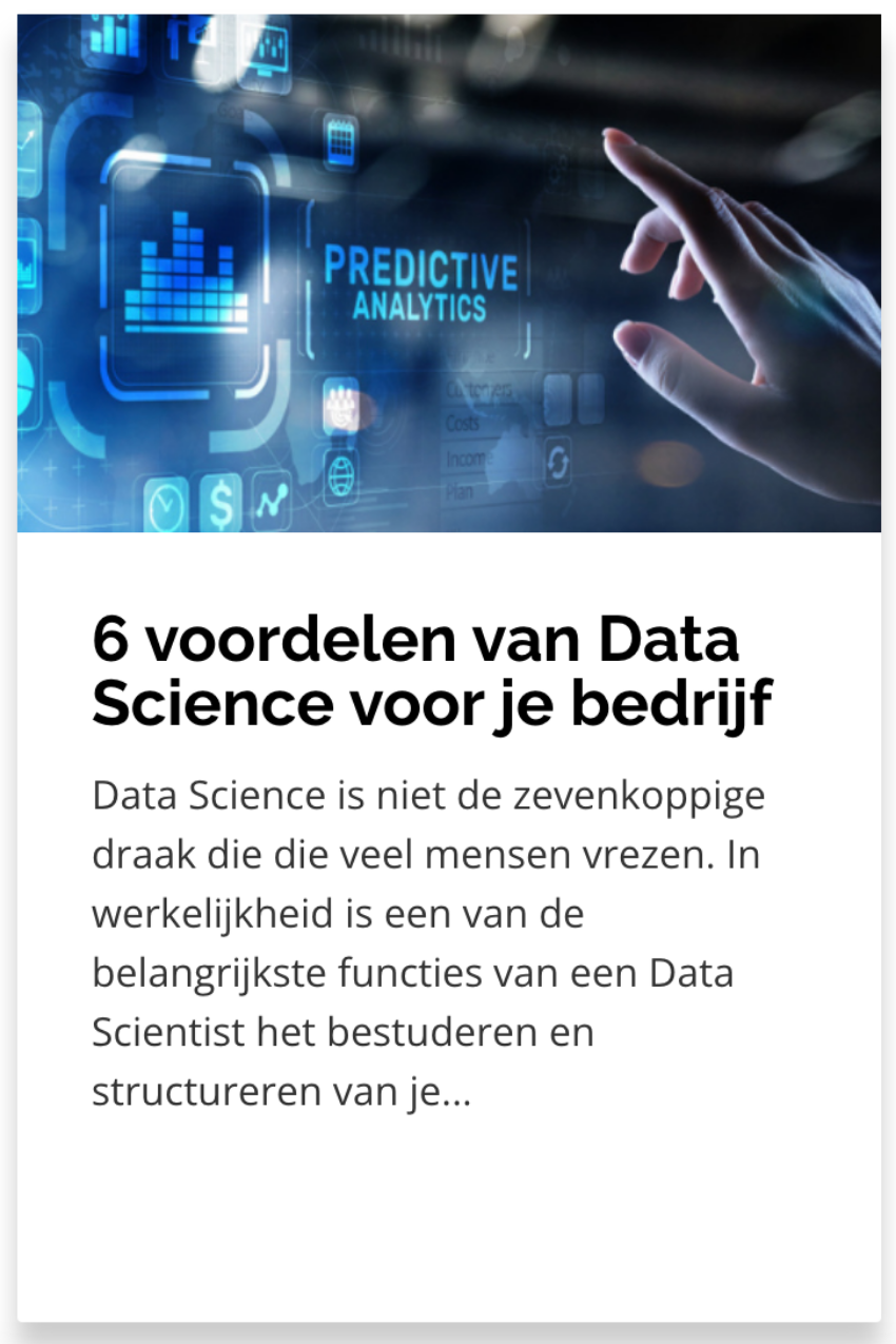 Wij ondersteunen onze klanten door onze expertise op het vlak van computerwetenschap, voorspellende analyses, statistieken en machine learning op geïntegreerde wijze toe te passen voor het ontginnen van zeer grote datasets, met als doel specifieke toekomstige gebeurtenissen te identificeren.