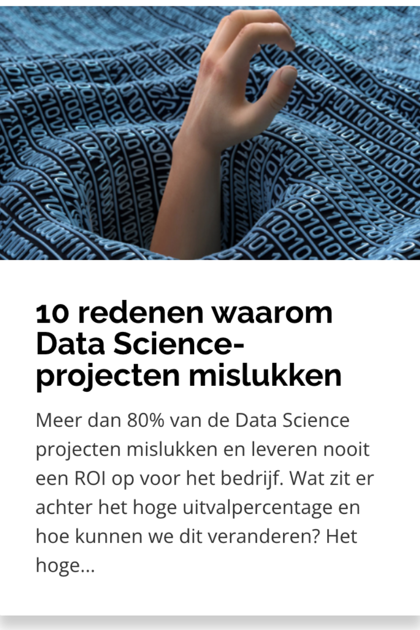 Deze handleiding geeft meer inzicht in de levenscyclus van Data Science projecten en is gebaseerd op ervaringen met complexe data gedreven oplossingen.